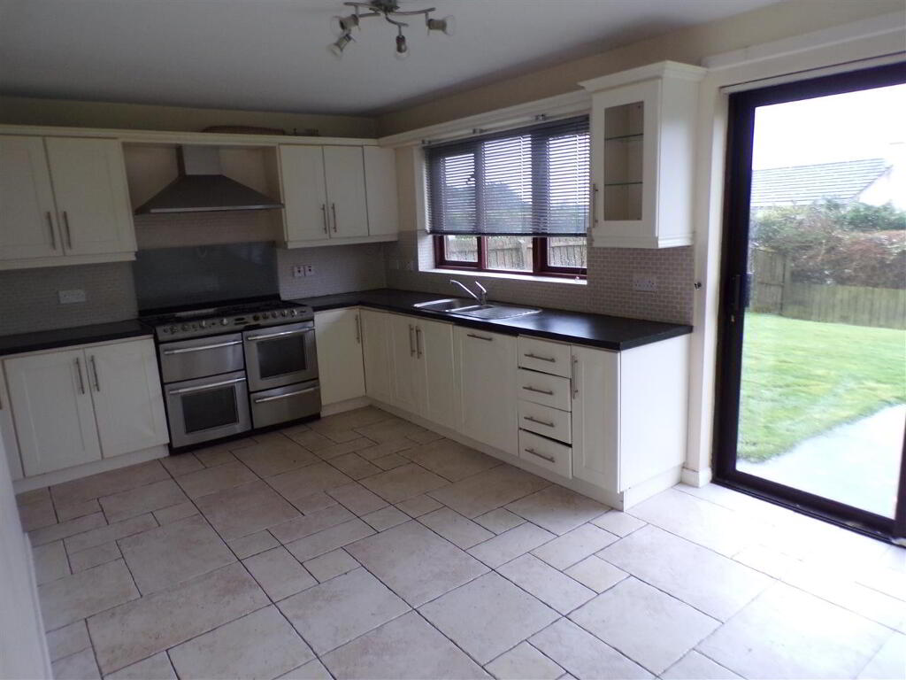 - Having range of eye and low level units, tiling between units, matching pelmet over window, 1 1/2 bowl stainless steel sink unit with mixer taps,'Belling' cooker centre, stainless steel extractor hood, integrated fridge/freezer and dishwasher, tiled floor, patio doors to rear lawn.