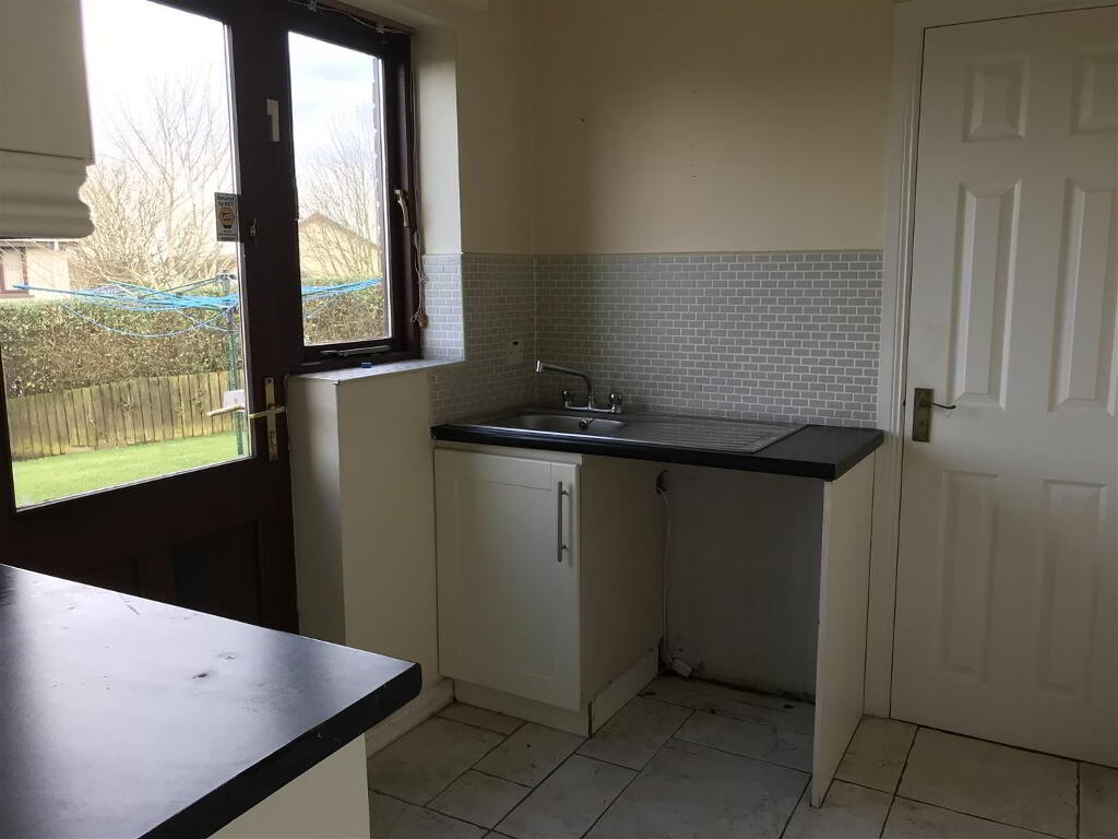 - Having eye and low level units, tiling between units, single drainer stainless steel units with mixer taps, tiled floor.
