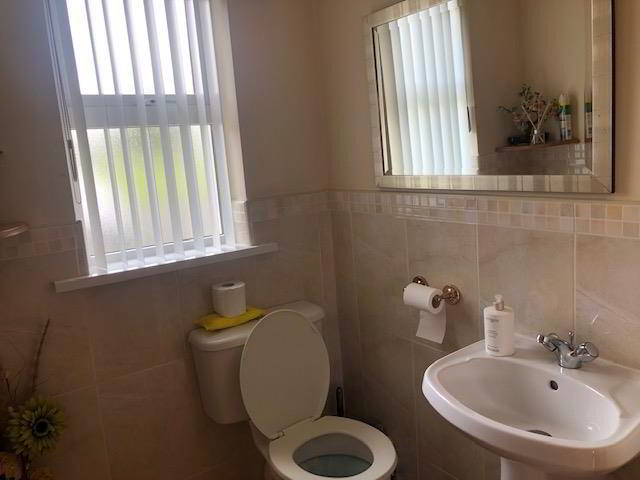 Having WC, WHB, 1/2 tiled walls, tiled floor