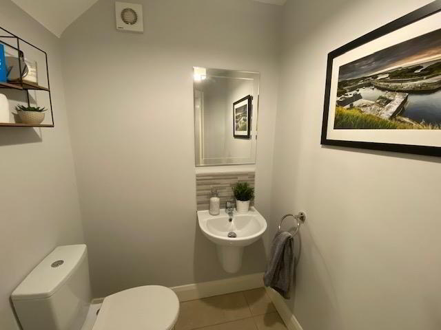 Comprising bath, whb and wc, fully tiled walk in shower, recessed lighting.