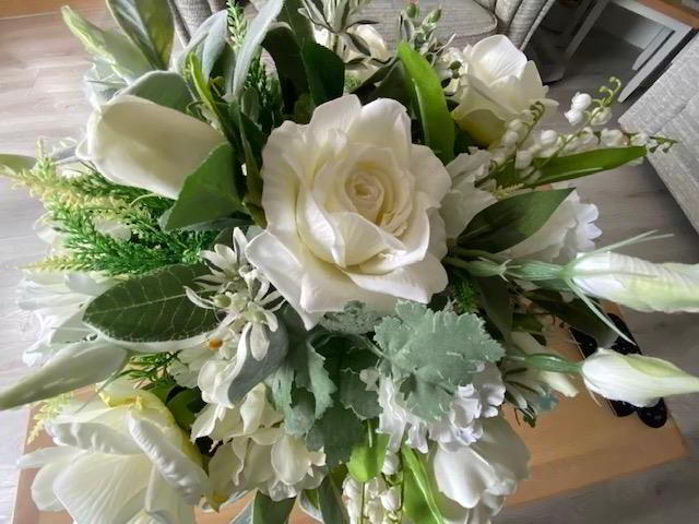 Comprising fully tiled walk in shower, whb and wc, chrome heated towel rail, tiled floor.