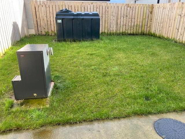 Neat lawn to rear enclosed by fence and gate. Brick pavia parking to front.
