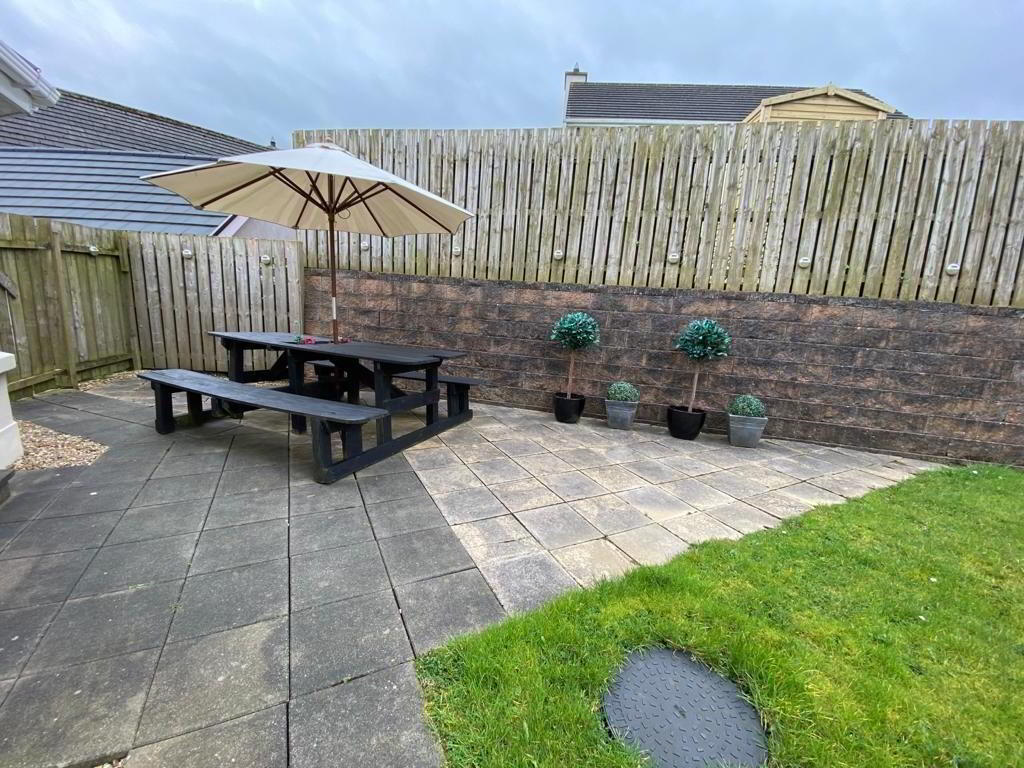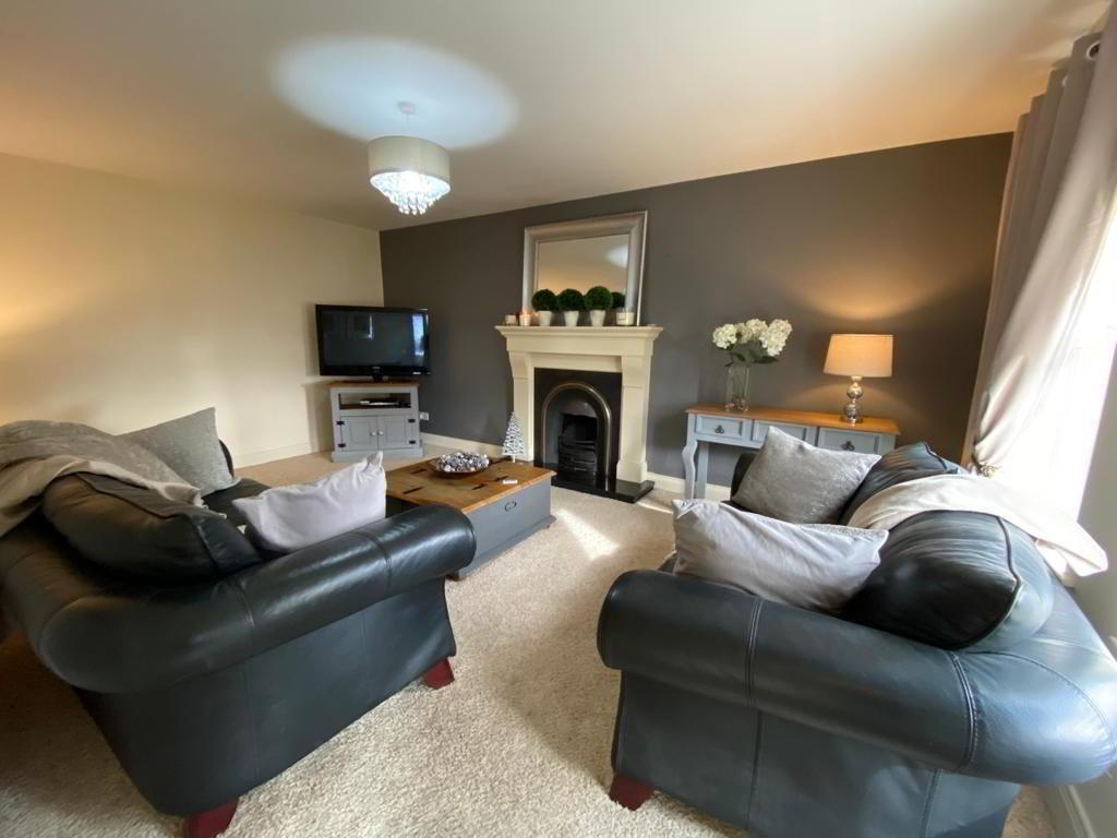 Neat lawns to front and rear. Paved patio area. Shed. Tarmac driveway.