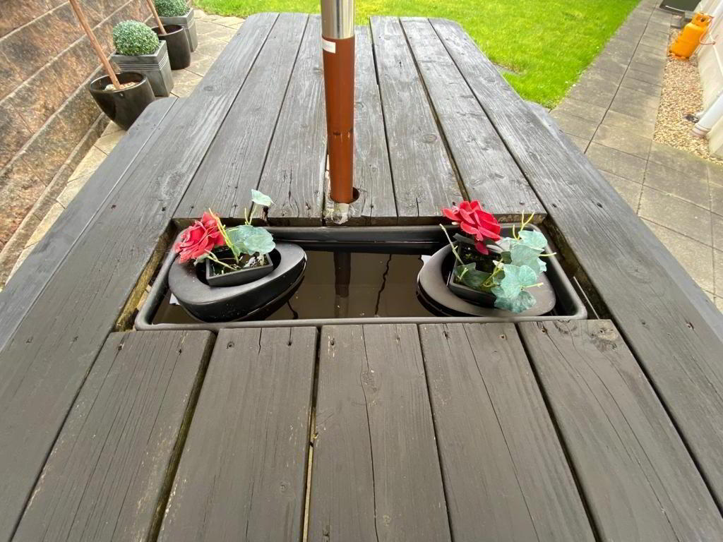 Having excellent range of eye and low level units, tiling between units, glazed display cupboards, wine rack, centre island with storage and breakfast bar, Belling cooking centre set in matching canopy with extractor fan, space for American style fridge / freezer, integrated dishwasher, tiled floor, double doors leading to Sunroom.