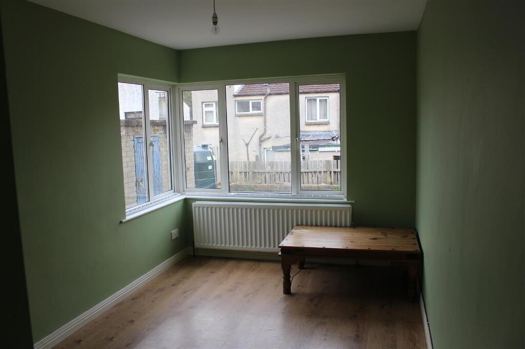 Oak fireplace with back boiler and cast iron inset. Bay window. Laminate flooring.