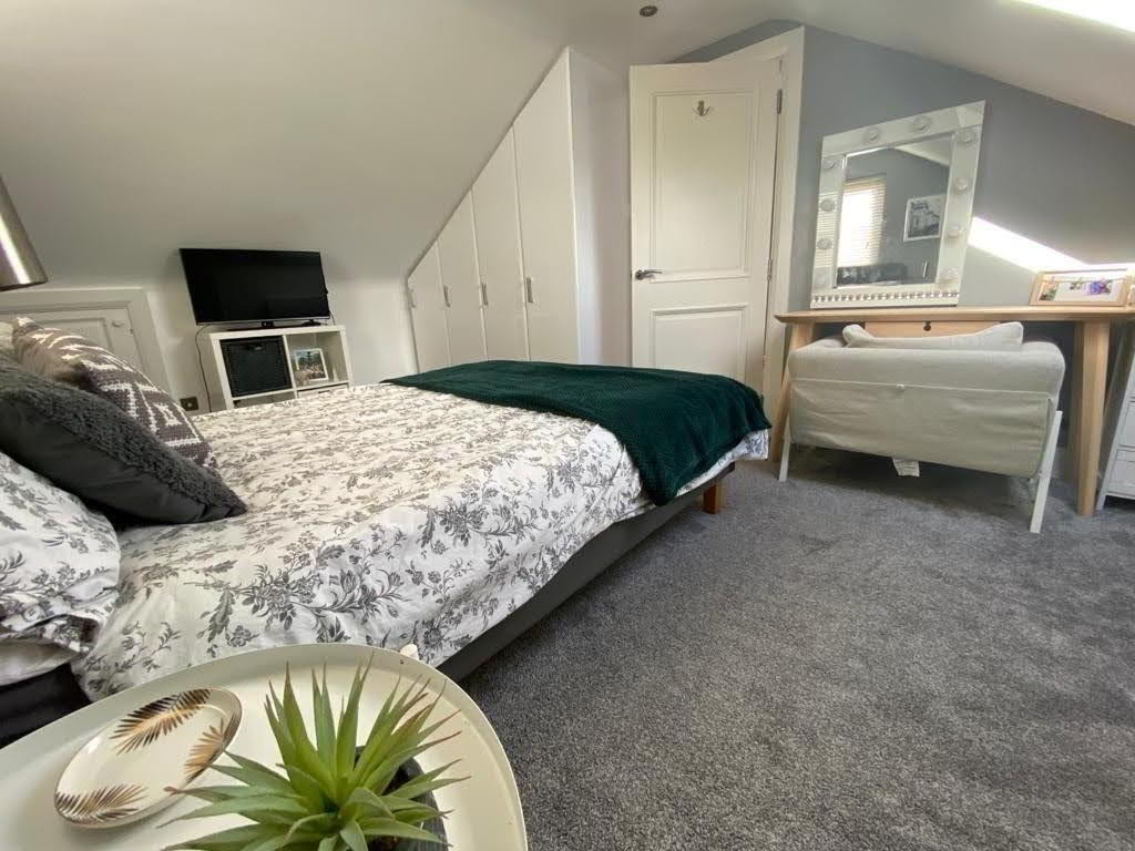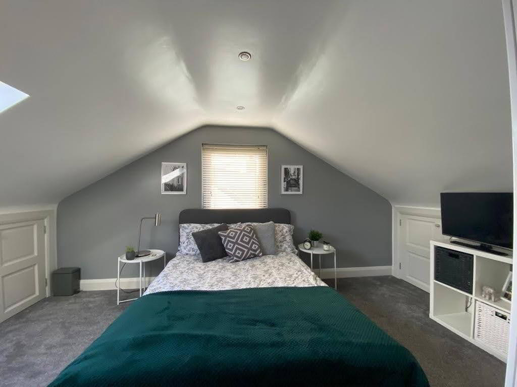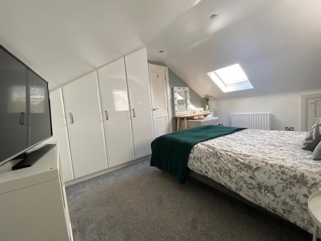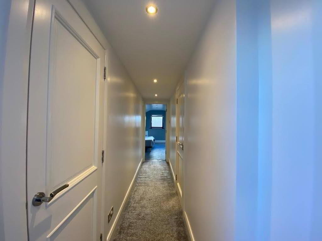 Having built in cupboards, access to attic storage.
