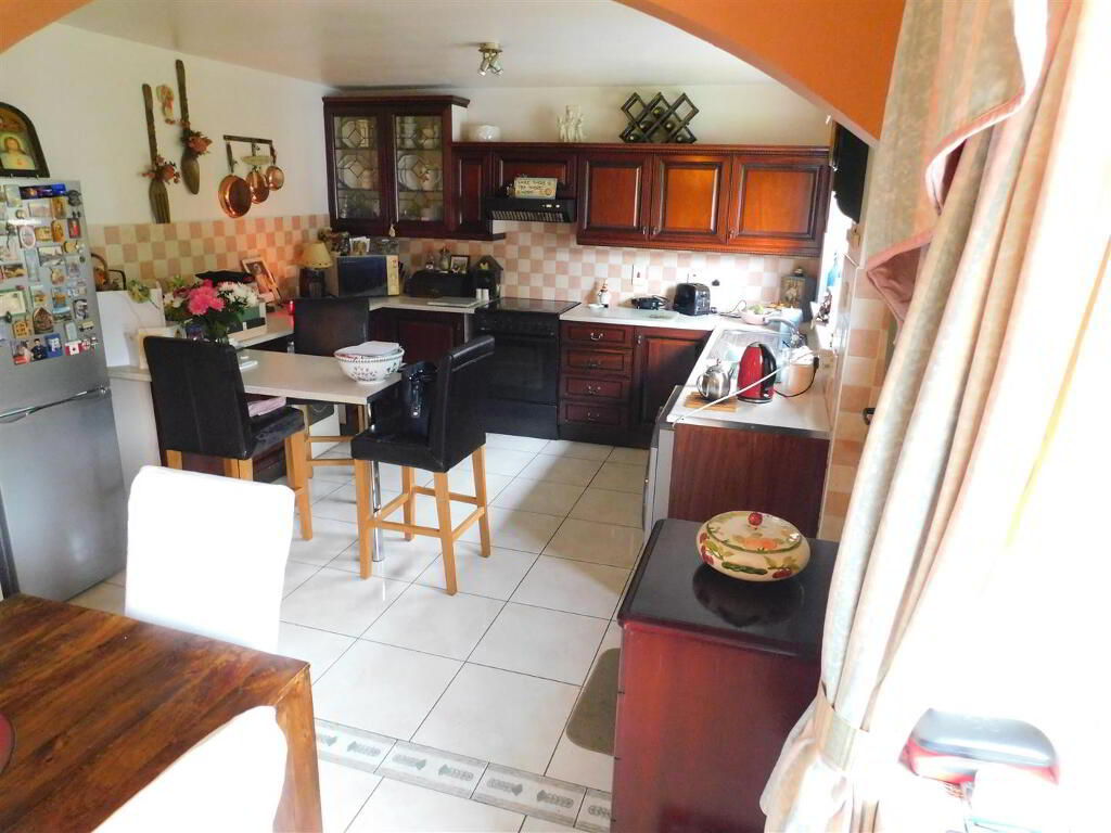 Having eye and low level units, tiling between units, single drainer stainless steel sink unit with mixer taps, glazed display units, breakfast bar, plumbed for washing machine, ample dining space, tiled floor.