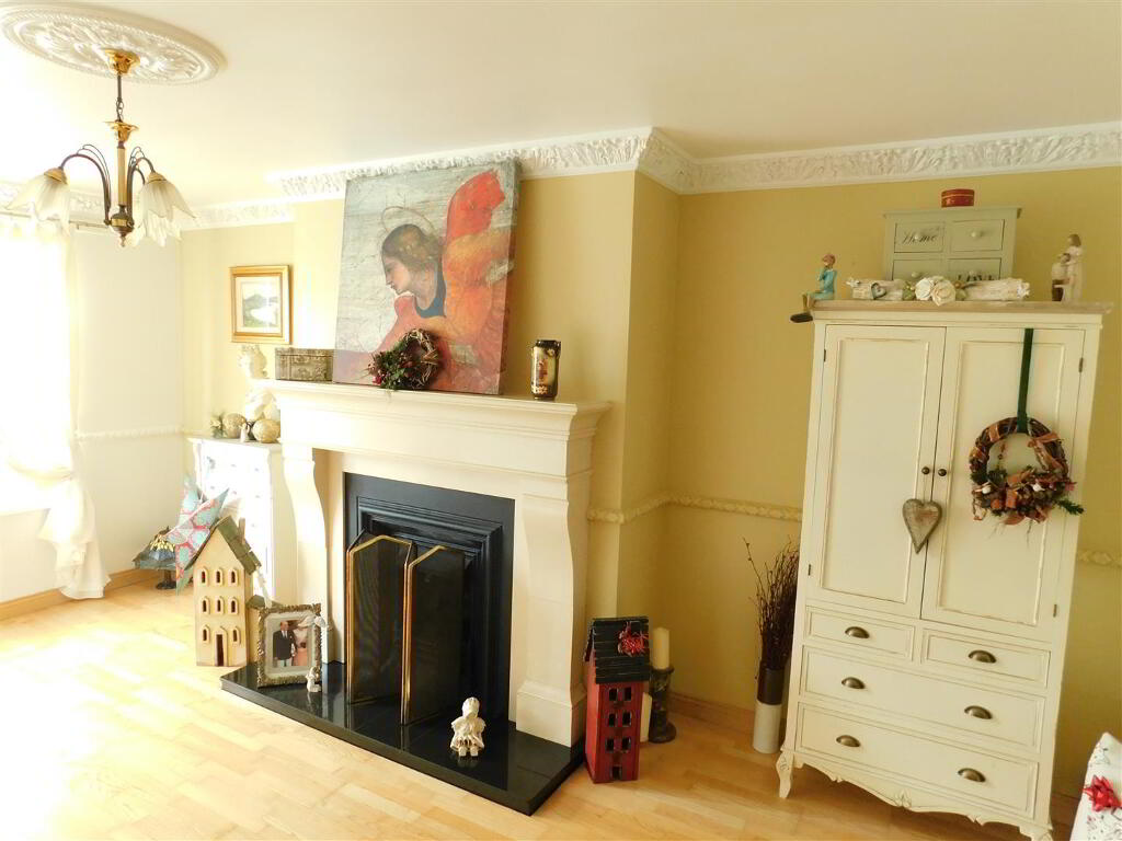 Having attractive fireplace with back boiler, granite hearth, ceiling cornicing and centre rose, semi-solid wooden floor.
