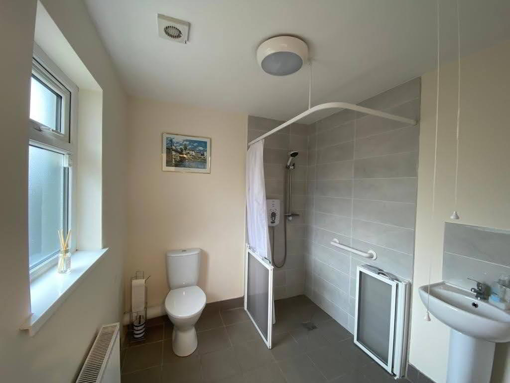 Comprising walk in electric shower, whb and wc,, tiled walls and floor.