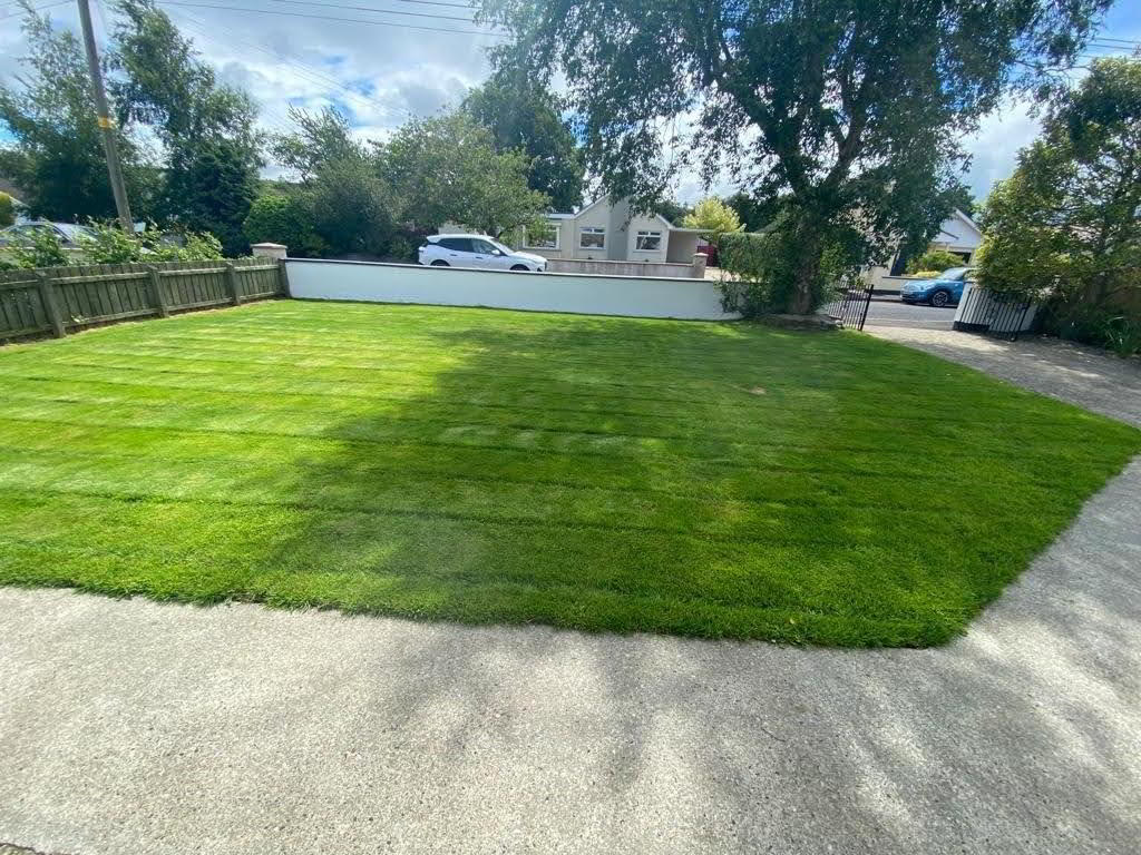 Neat lawn to front bordered by wall and double entrance gates. Extensive lawn to rear enclosed by fence and gate. Driveway to front leading to garage with flower bed to side. Outside light and tap.