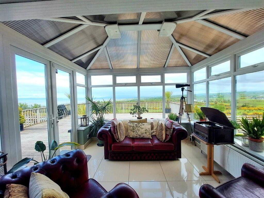 It is situated on a generous plot, hidden away from view down a Country lane on the hills above City of Derry Airport convenient to the amenities of Eglinton village.