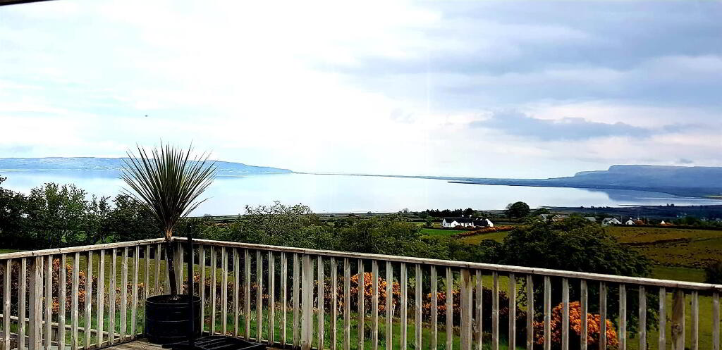 Neat lawns to front and rear stocked with fruit bushes and flowering shrubs. Neat lawn to rear with stunning views over open countryside, Lough Foyle, Binevenagh and Donegal. Gravel driveway. Decked patio area. Rockery. Barbecue area with electric sockets. 3 Garden Sheds one with electricity. Vegetable patch. Chicken coup. External electric sockets.