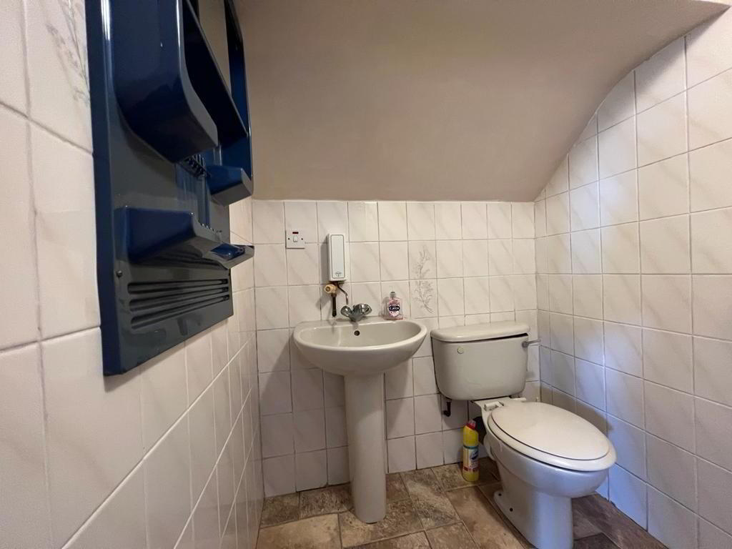 Comprising electric shower; wash hand basin and WC; fully tiled walls and floor