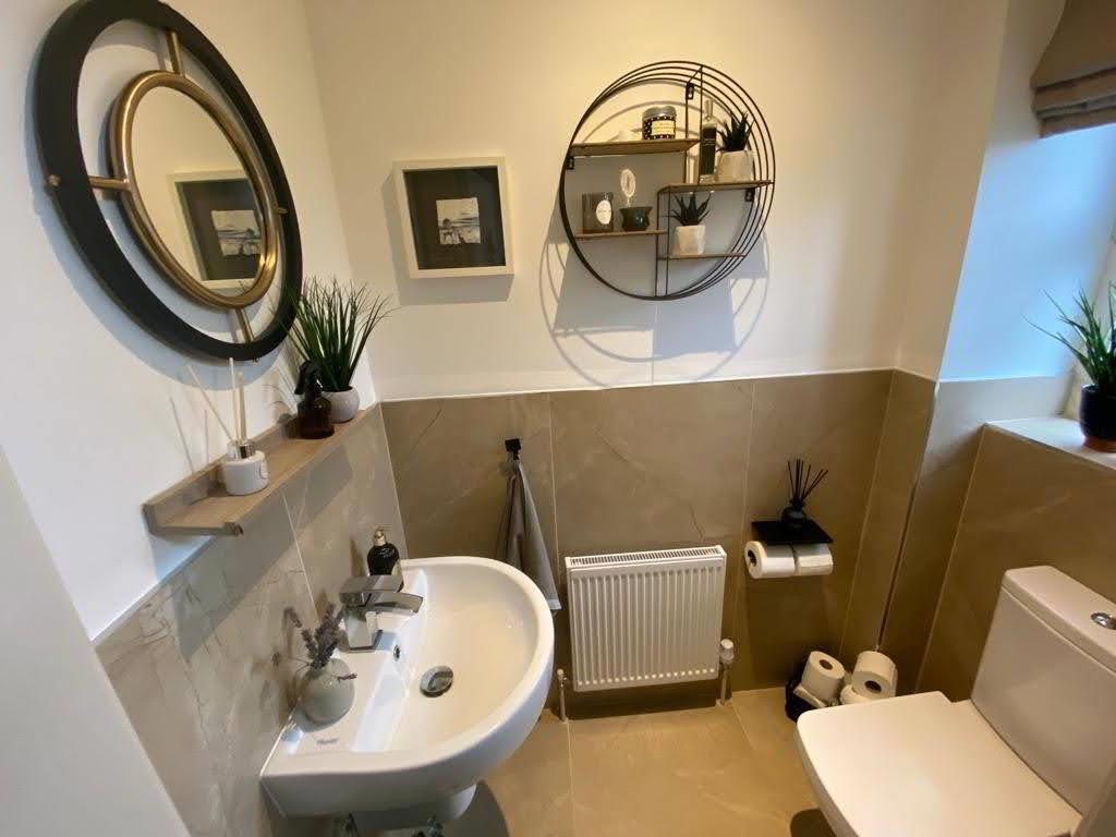 Comprising fully tiled walk in shower, whb and wc, extractor fan, recessed lighting, Bluetooth mirror, extractor fan, tiled floor.