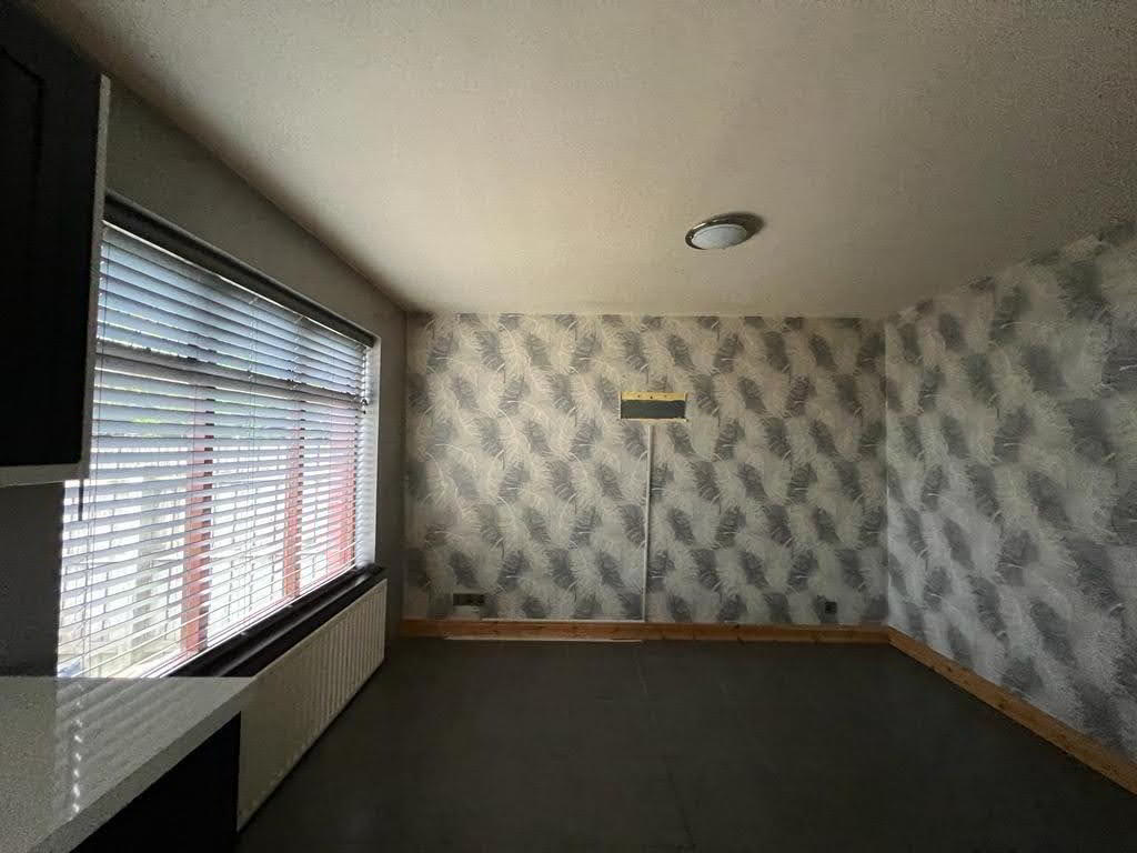Having range of eye and low level units, single drainer stainless steel sink unit with mixer taps, stainless steel extractor hood, plumbed for washing machine, ample dining space.