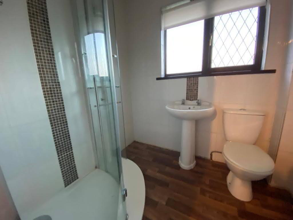 Comprising fully tiled walk in electric shower, whb and wc, fully tiled walls.