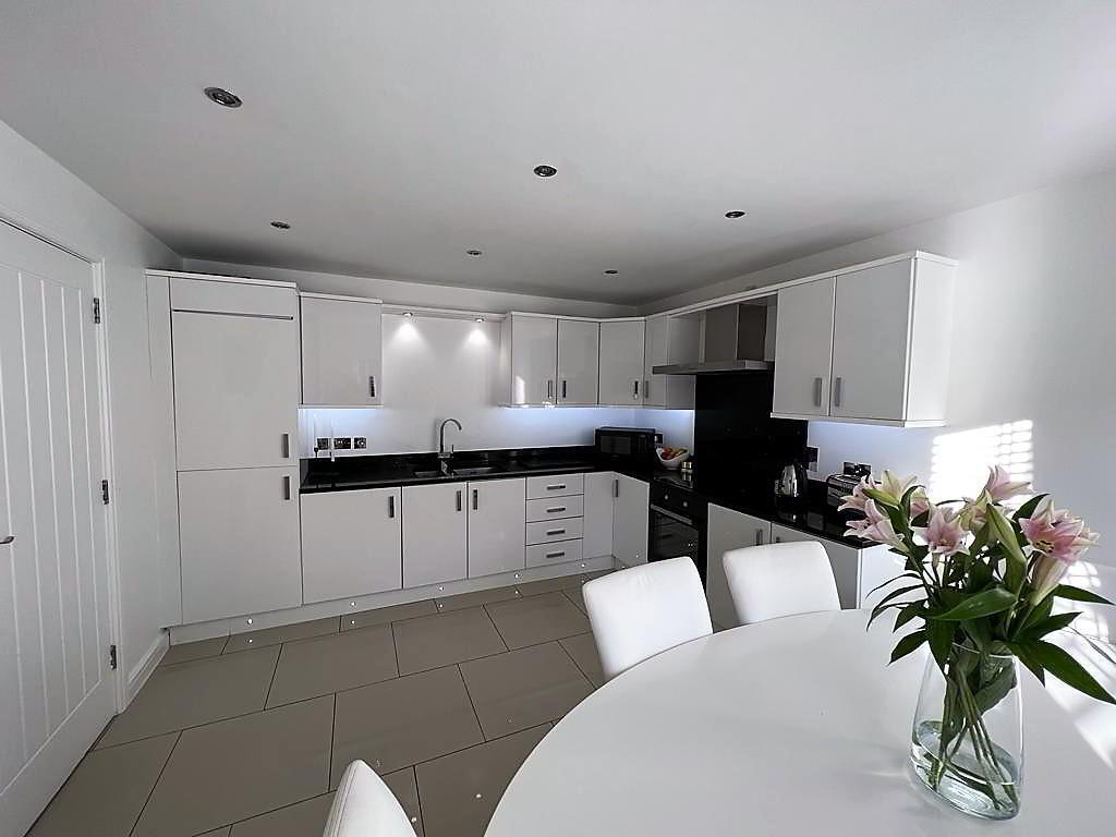 Having excellent range of eye and low level units; hob; under oven; stainless steel extractor hood; 11/2 bowl stainless steel sink unit with mixer taps; granite worktop and splashback; integrated fridge freezer and dishwasher; recessed lighting; tiled floor; ample dining space