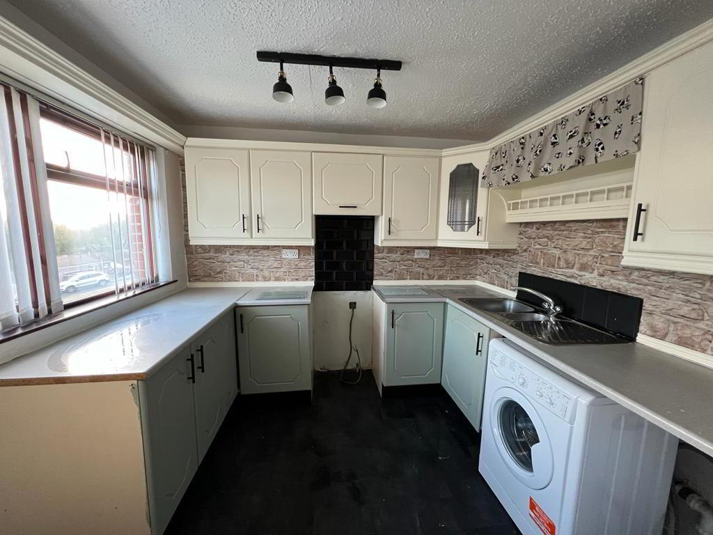 Having eye and low level units, 1 1/2 bowl stainless steel sink unit with mixer taps, extractor hood, plumbed for washing machine, plumbed for dishwasher, dining area having laminated wooden floor.