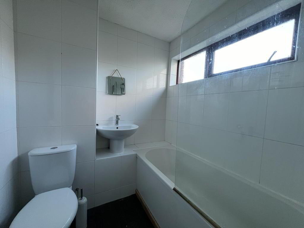 Comprising bath with shower over, shower screen, whb and wc, tiled floor.