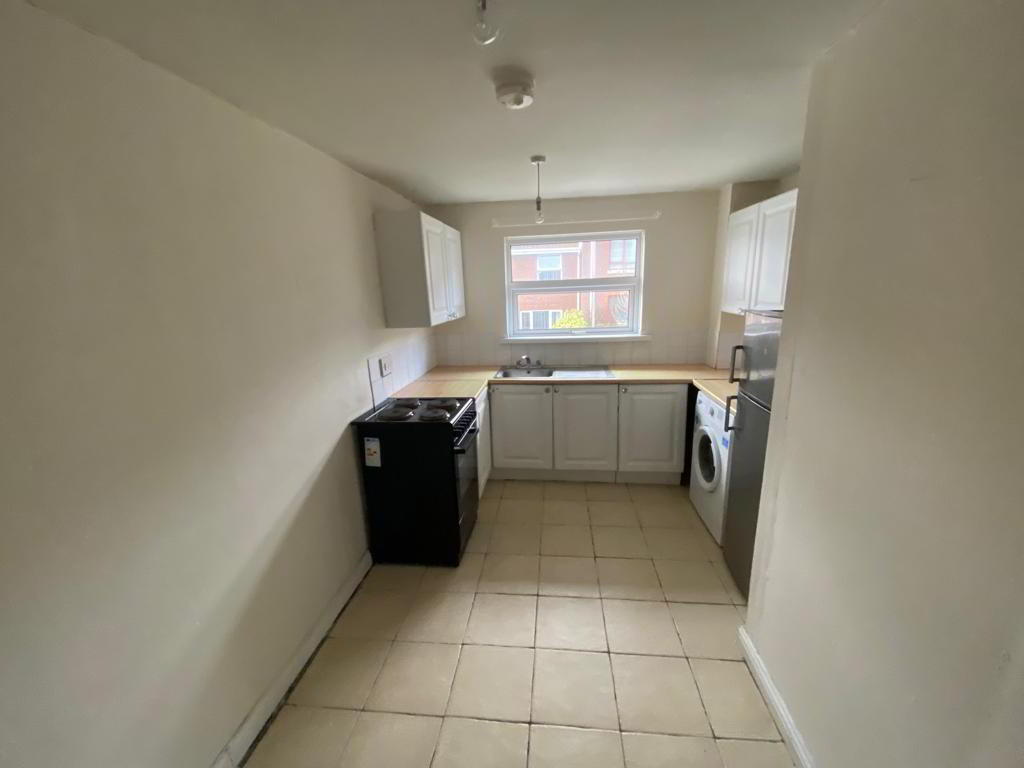 Having eye and low level units, tiling between units, single drainer stainless sink unit with mixer taps, plumbed for washing machine, space for fridge/freezer, space for cooker, tiled floor.