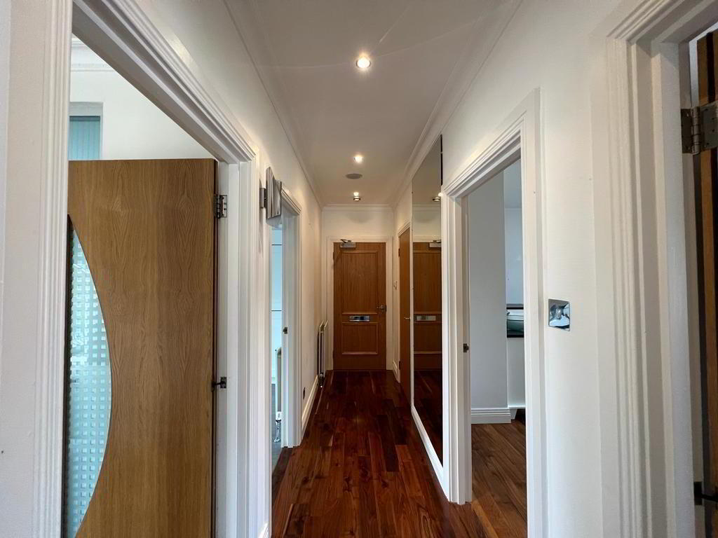 Having cloaks cupboard, ceiling cornicing, recessed lighting, Walnut wooden floor.