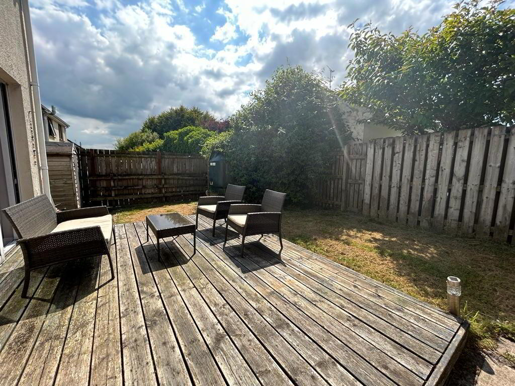 Garden to front. Garden to rear bordered by fence. Decking area to rear. Tarmac driveway.