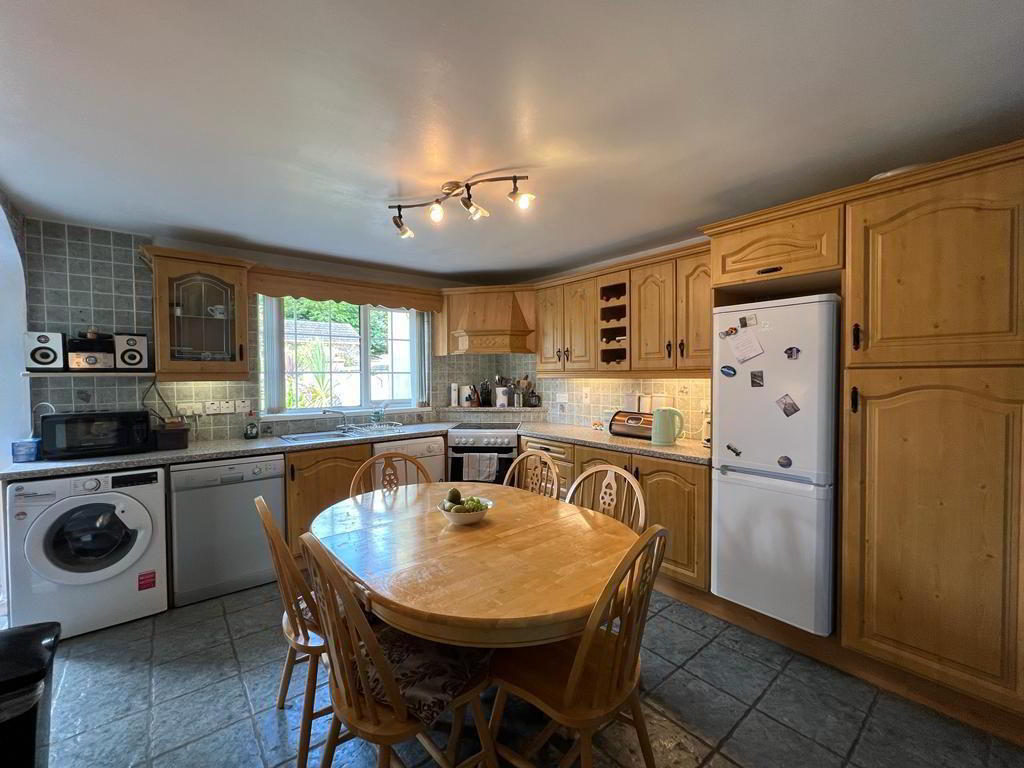 Having eye and low level units, tiling between units, matching pelmet over window, single drainer stainless steel sink unit with mixer taps, extractor fan, plumbed for washing machine and dishwasher, space for tumble dryer, space for fridge / freezer, tiled floor.