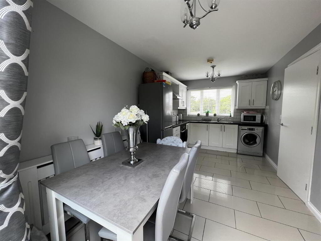 Having range of eye & low level units, tiling between units, hob & under oven stainless steel extractor hood, space for fridge/freezer, plumbed for automatic washing machine , patio doorS leading to rear lawn.