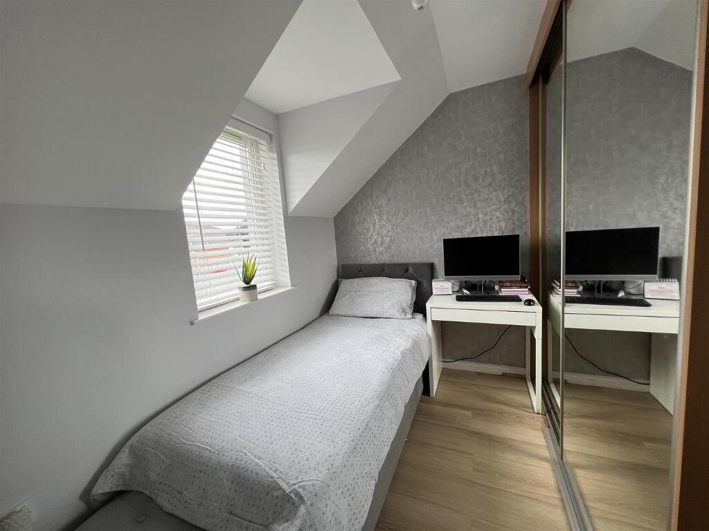 Having built in wardrobes with sliding mirrored doors, laminated wooden floor