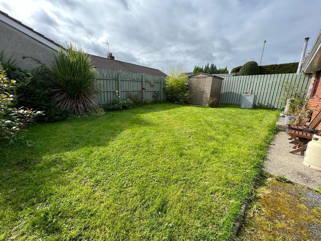 Neat lawn to front bordered by fence Neat lawn to rear Driveway to side Garden Shed