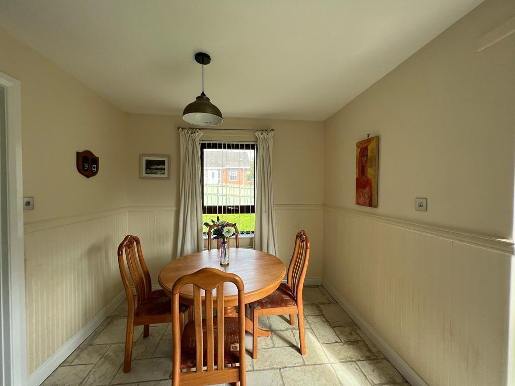 Having range of eye and low level units, tiling between, gas hob, electric under oven, plumbed for automatic washing machine, space for for fridge/freezer dining space with 1/2 height wooden panelled walls,