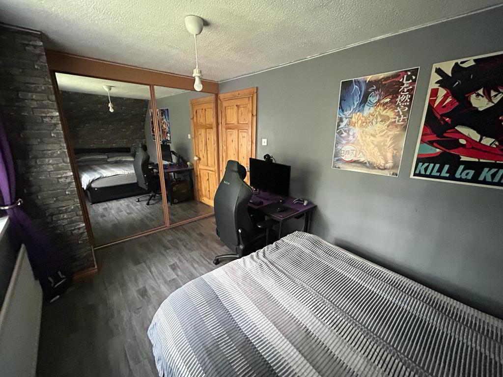 Having wall to wall built in wardrobes with sliding mirrored doors.