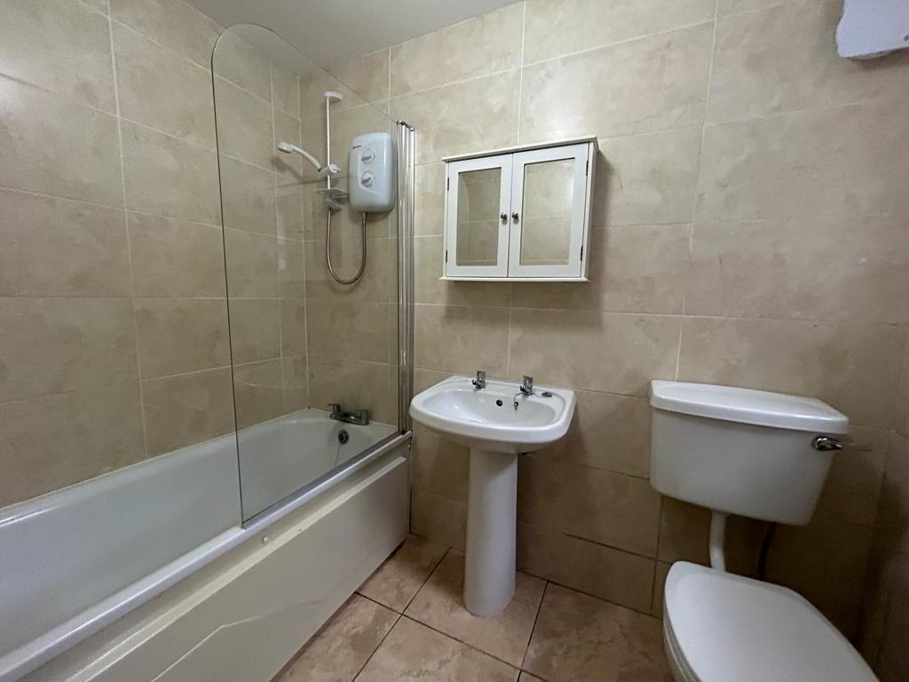 Comprising bath with electric shower over, whb and wc, fully tiled walls, tiled floor.