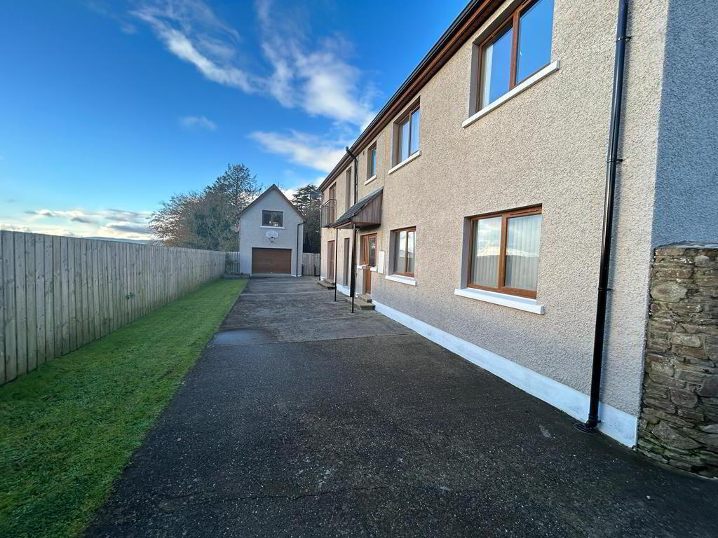 Paved patio area. Enclosed to rear by fence and gate. Driveway to side with double entrance gates. Lawns to front and rear.