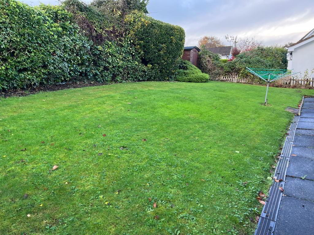 Neat lawns to front and rear. Tarmac driveway. Shed.