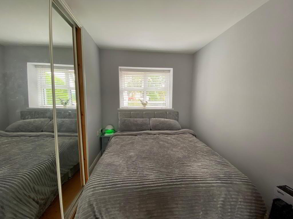 built in wardrobes with sliding mirror doors, laminated wooden floor
