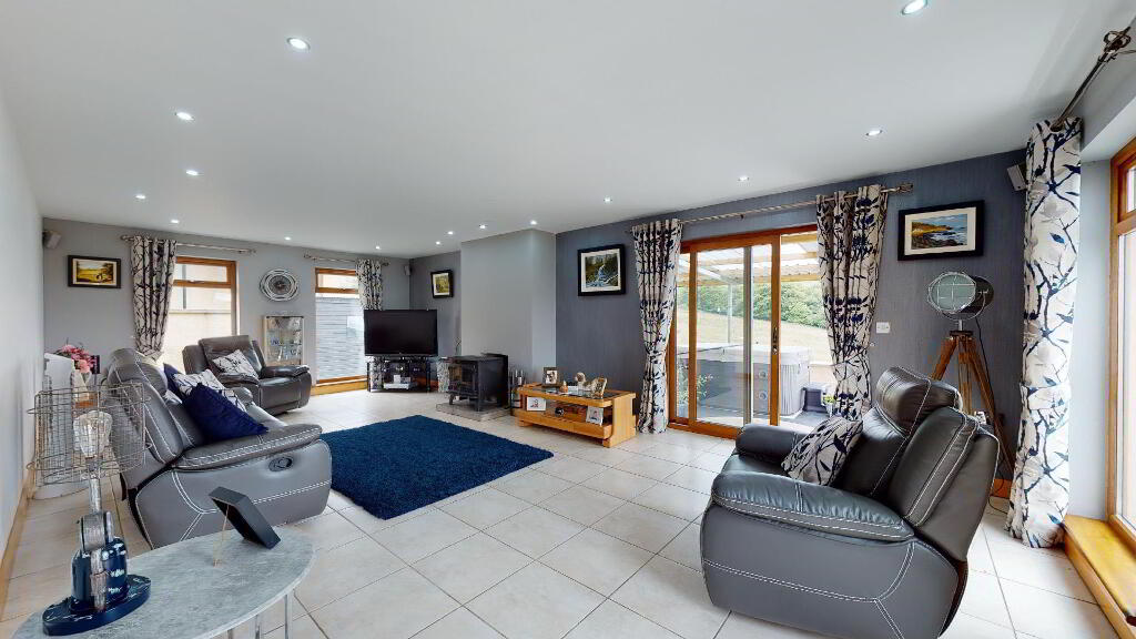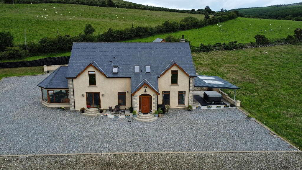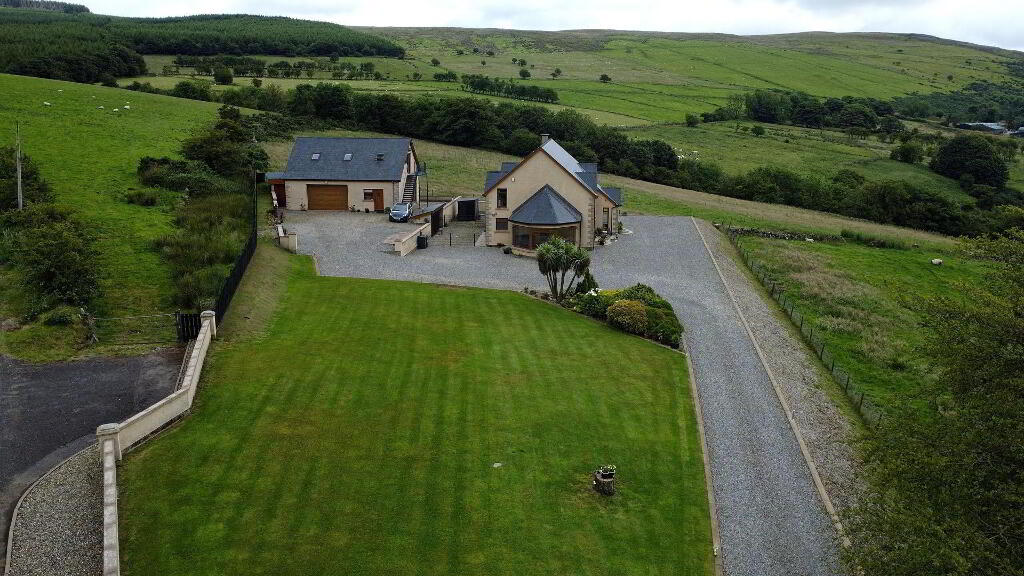 This beautifully appointed detached family home is set in the heart of the Roe Valley, an area of natural beauty with commanding views of the surrounding countryside. It is set on a generous 3/4 acre site with the added benefit of having detached self-catering accommodation, offering potential for either personal or business use for self-catering holidays lets. The main property boasts excellent and well laid out family accommodation to include 4 bedrooms and 2 receptions which have been finished to a high standard and offer all the luxuries of modern living. Two of the first floor bedrooms offer en-suite facilities with the master en-suite having a Jacuzzi bath. This home is complimented by a large surrounding garden with mature lawn to side and covered area suitable for hot-tub, etc. The property is located three miles from Limavady Town Centre and five miles from Downhill beach. We as the selling agents highly recommend inspection to appreciate everything this fine home has to offer.