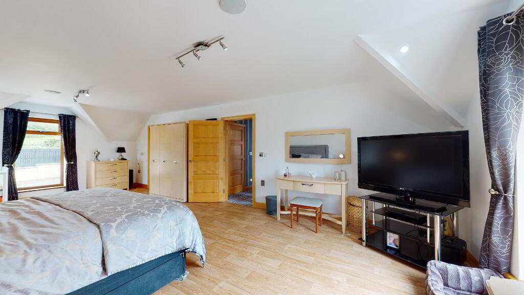 Garage/apartment built with insulated cavity walls, has its own oil radiator central heating system, pressurised water system with two power showers, electric insulated garage door. It would suit for business use i.e. air B&B rental, etc.