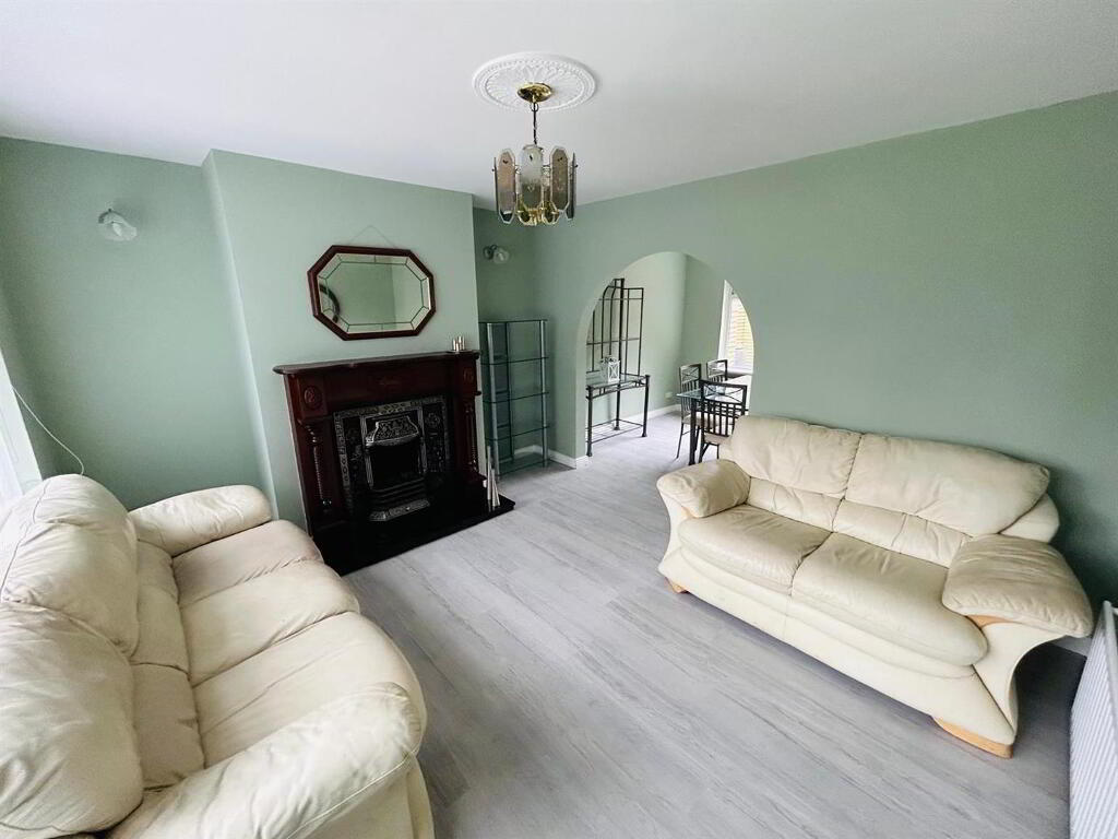Having fireplace with mahogany surround, cast iron inset and tiled hearth, archway leading to Dining area.