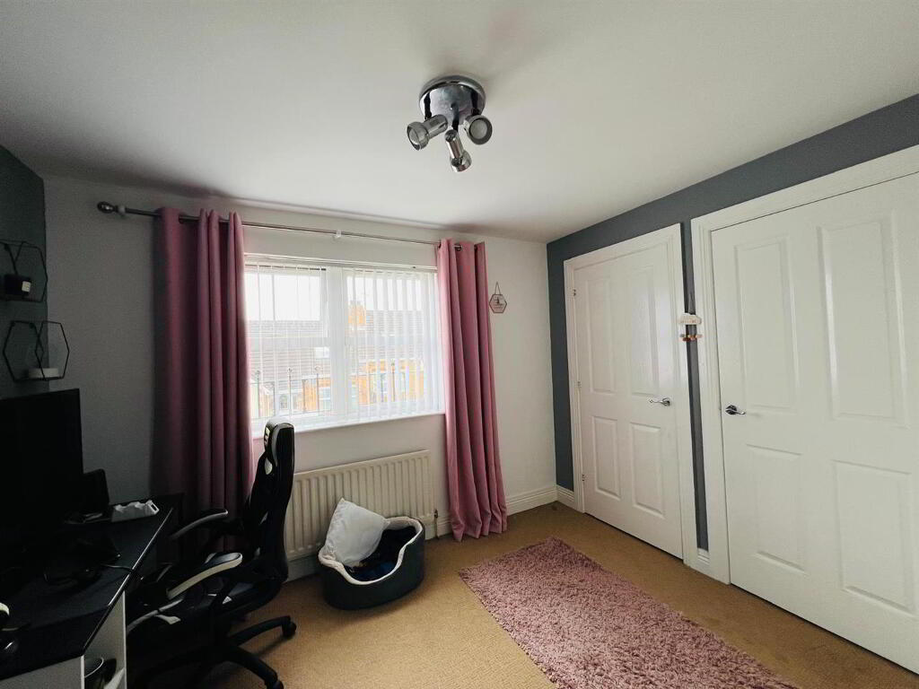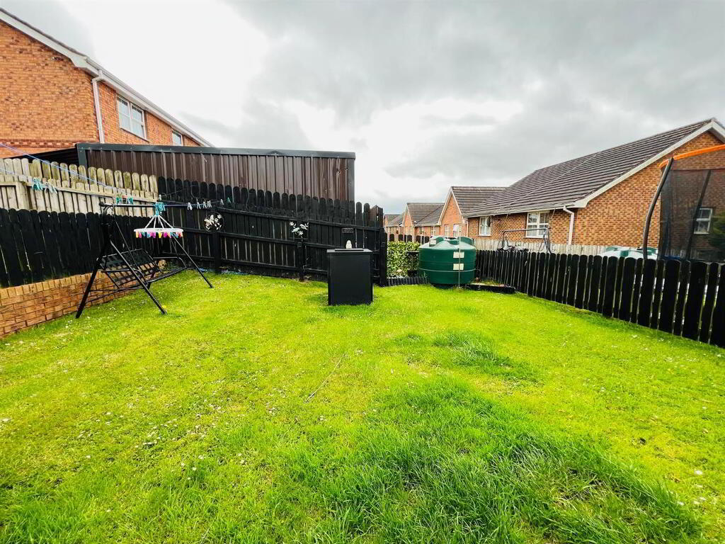 Lawn to front. Neat lawn to rear. Tarmac driveway to side.