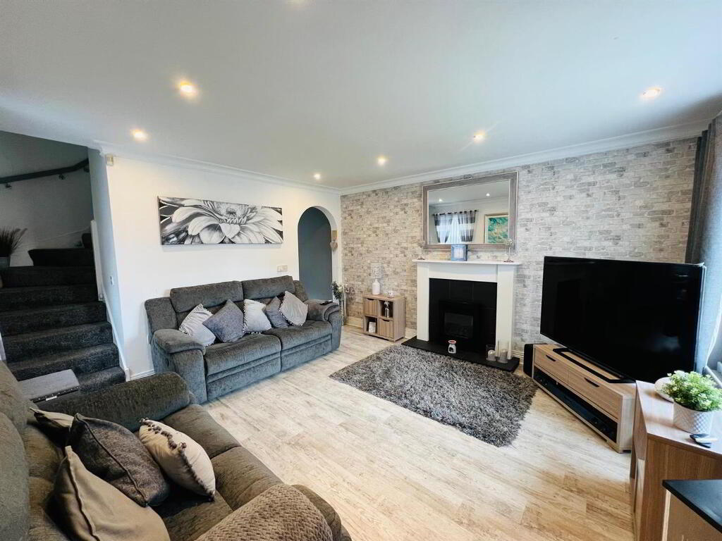 Having attractive fireplace with gas inset, ceiling cornicing, recessed lighting, laminated wooden floor.