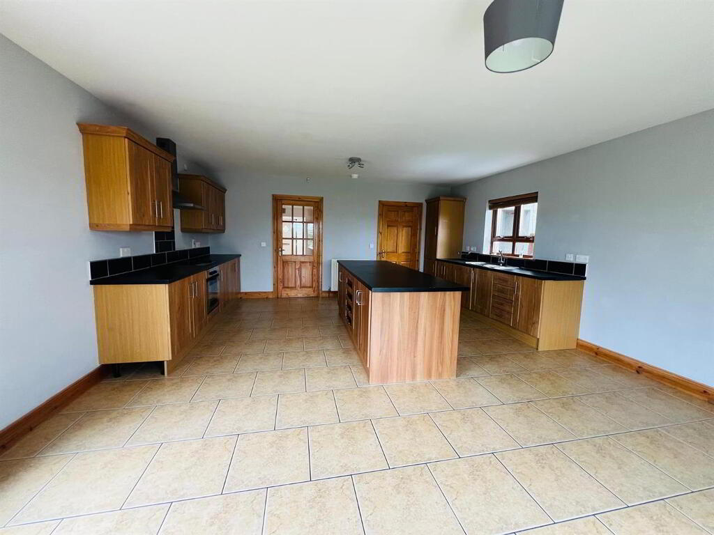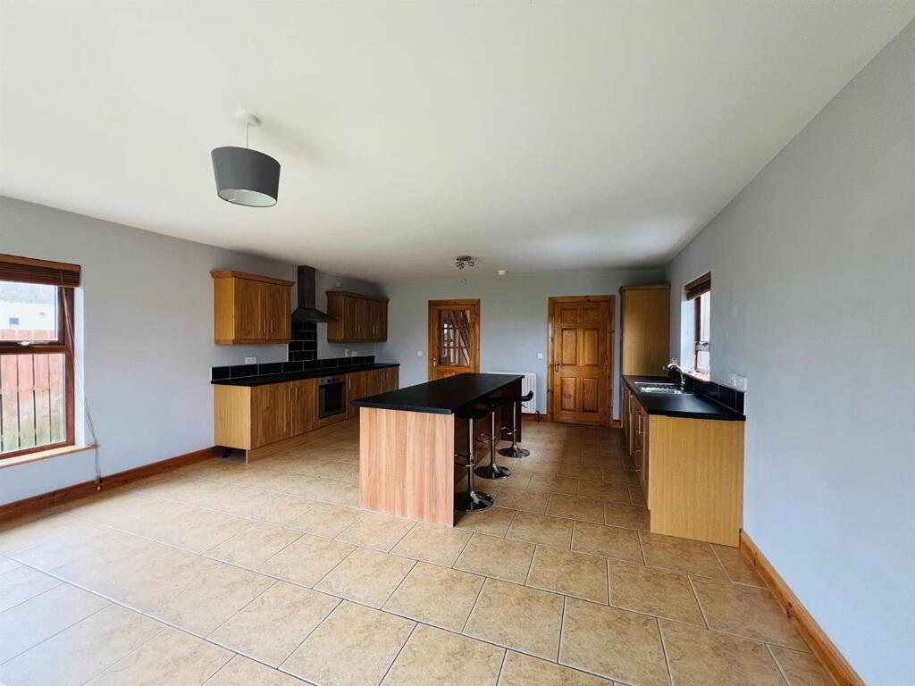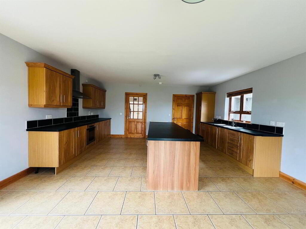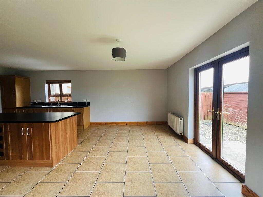 Having range of eye and low level units, single drainer stainless steel sink unit with mixer taps, hob, underoven, stainless steel extractor hood, integrated fridge / freezer and dishwasher, centre island with breakfast bar and storage under, wine rackm ample dining space with French doors leading to rear, tiled floor.