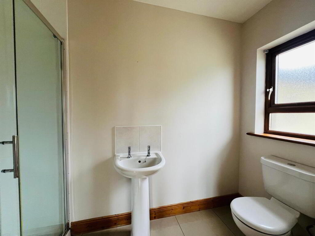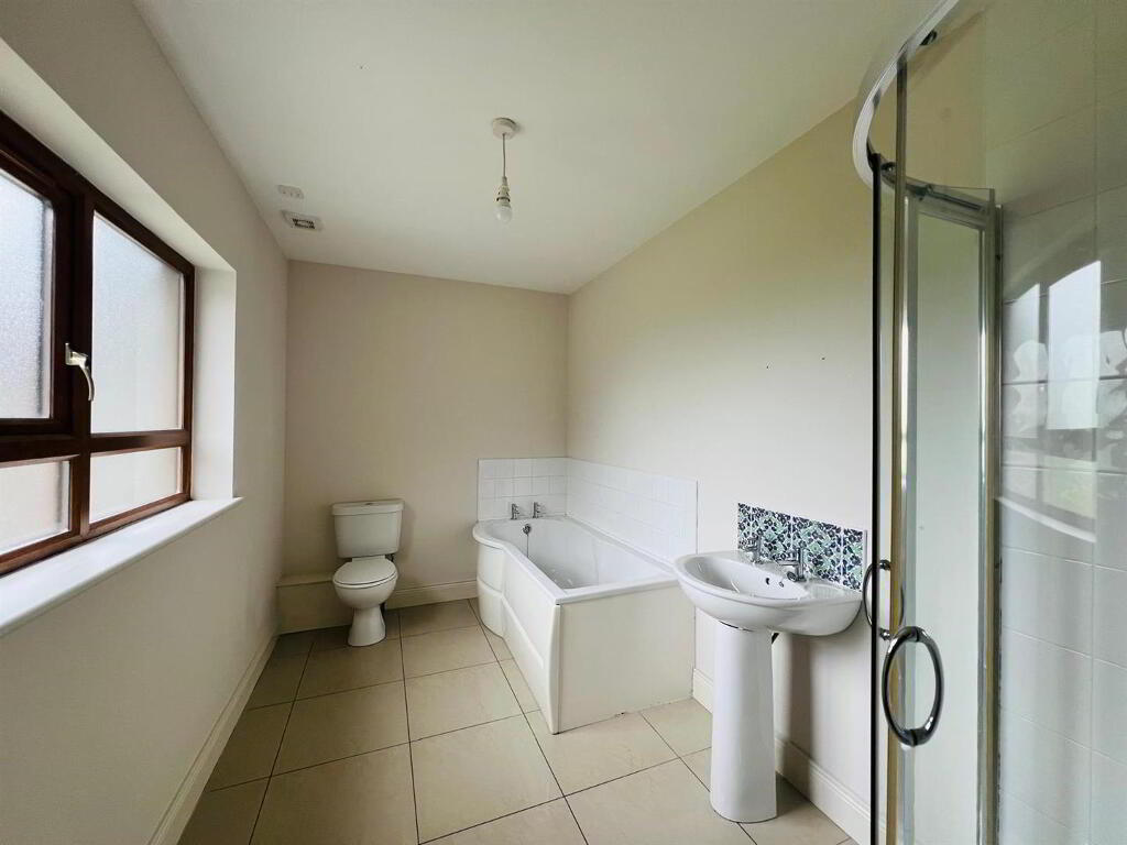 Comprising bath, walk in tiled electric shower, whb and wc, tiled floor.