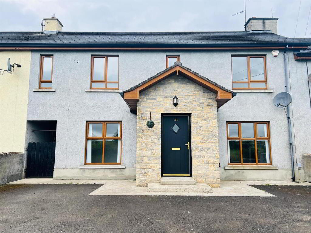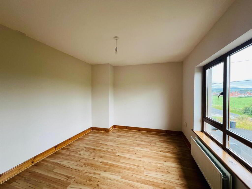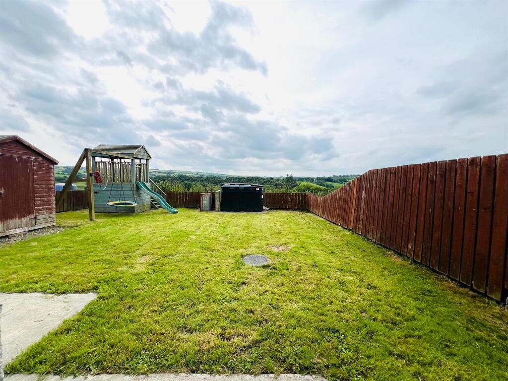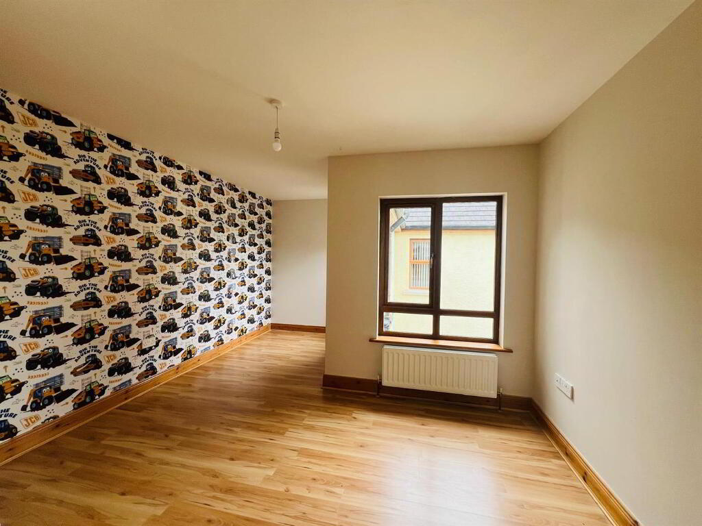 Neat lawn to rear enclosed by fence and gate. Tarmac parking.