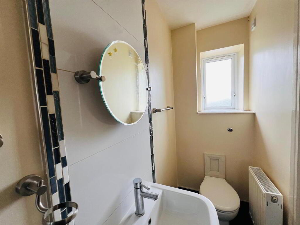 Comprising fully tiled walk in shower, whb and wc, tiled floor.