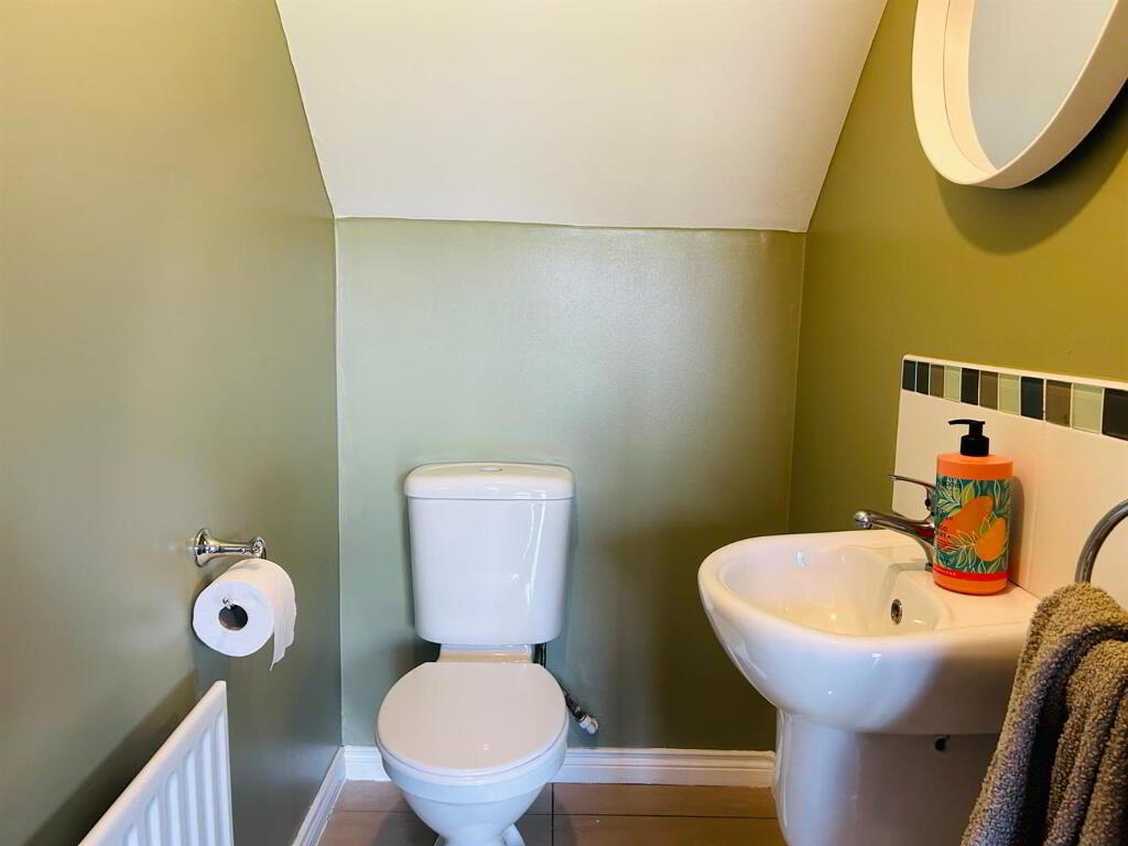 Comprising bath with electric shower over, shower screen, whb and wc, fully tiled walls and floor.