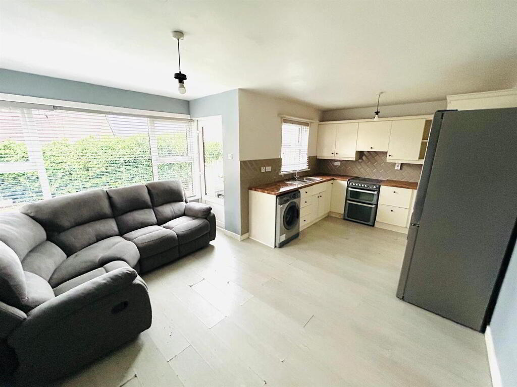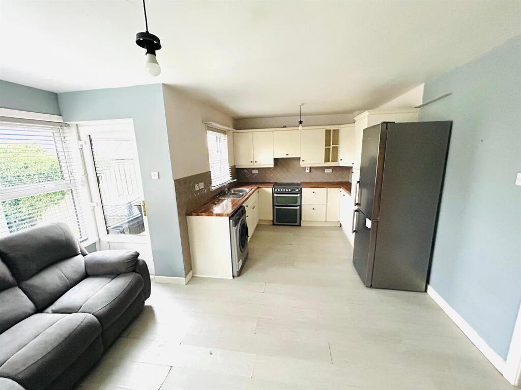 Having range of eye and low level units, tiling between units, 1 1/2 bowl stainless steel sink unit with mixer taps, plumbed for washing machine, wired for cooker, space for fridge/freezer, ample dining space, laminated wooden floor, door to rear.