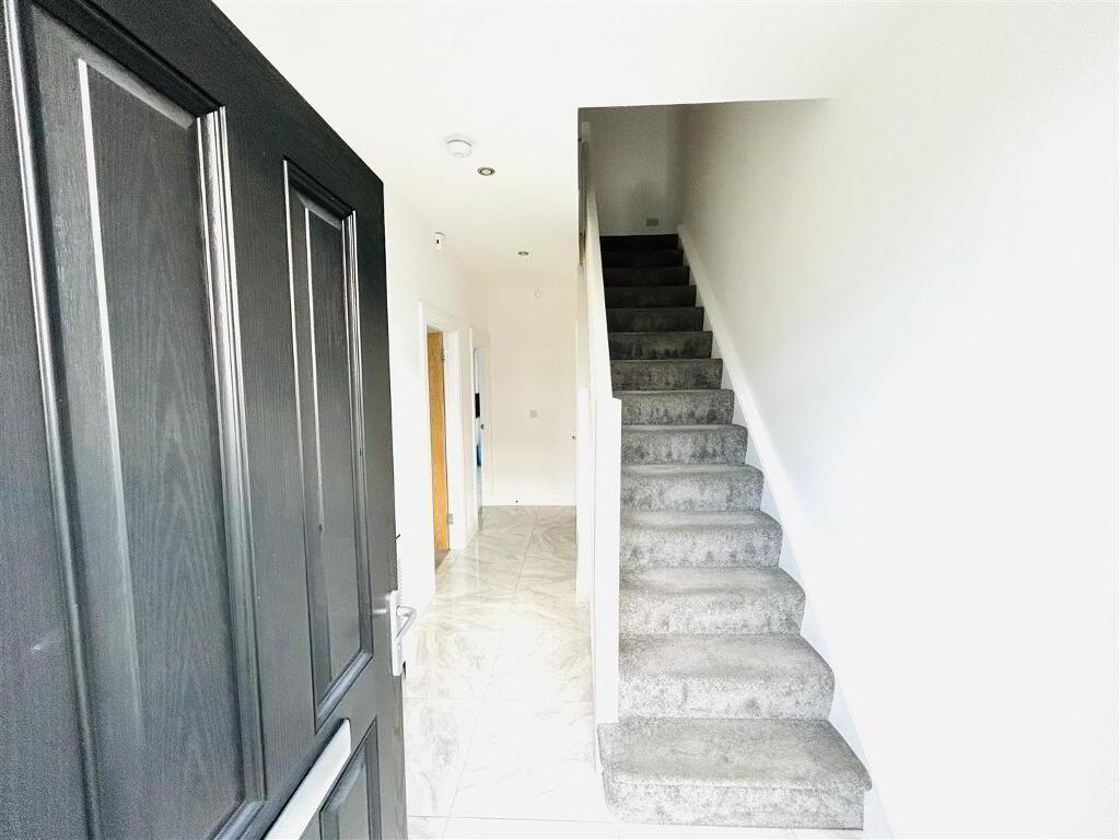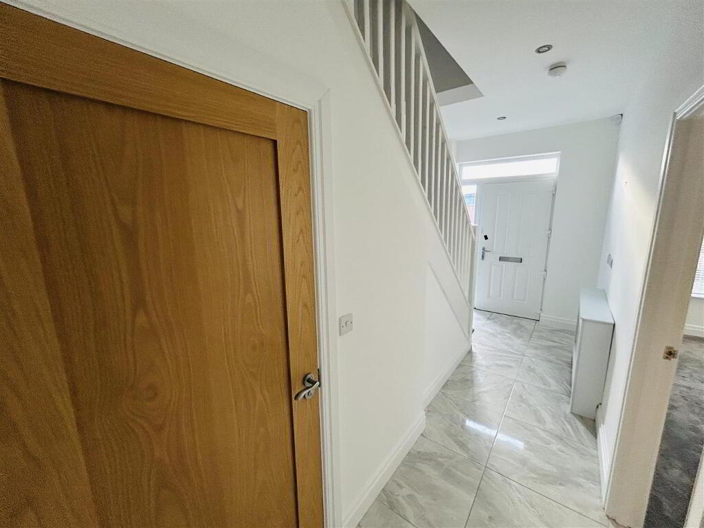 Neat lawns to front and rear. Paved patio area to rear leading to lawn, bordered by wall and fence and enclosed by gate.