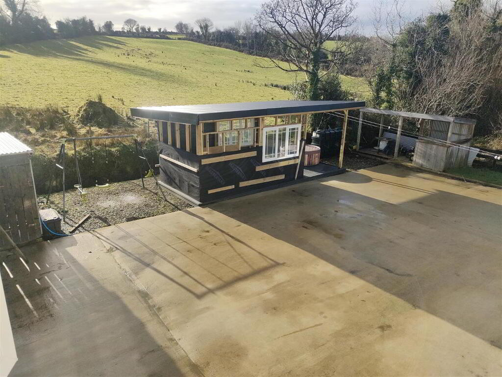 Lawn to front. Extensive concrete yard to rear with sheds and base for garage. Summer House may be purchased at an extra cost.