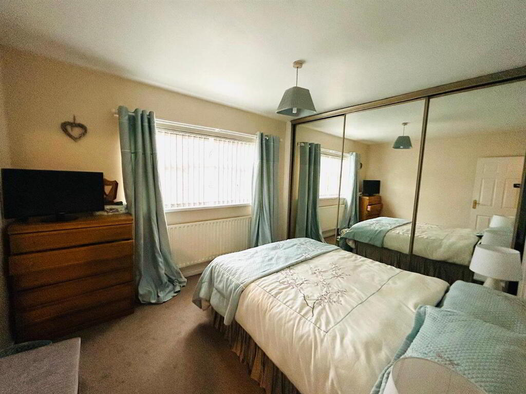 Having wall to wall built in wardrobes with sliding mirrored doors.